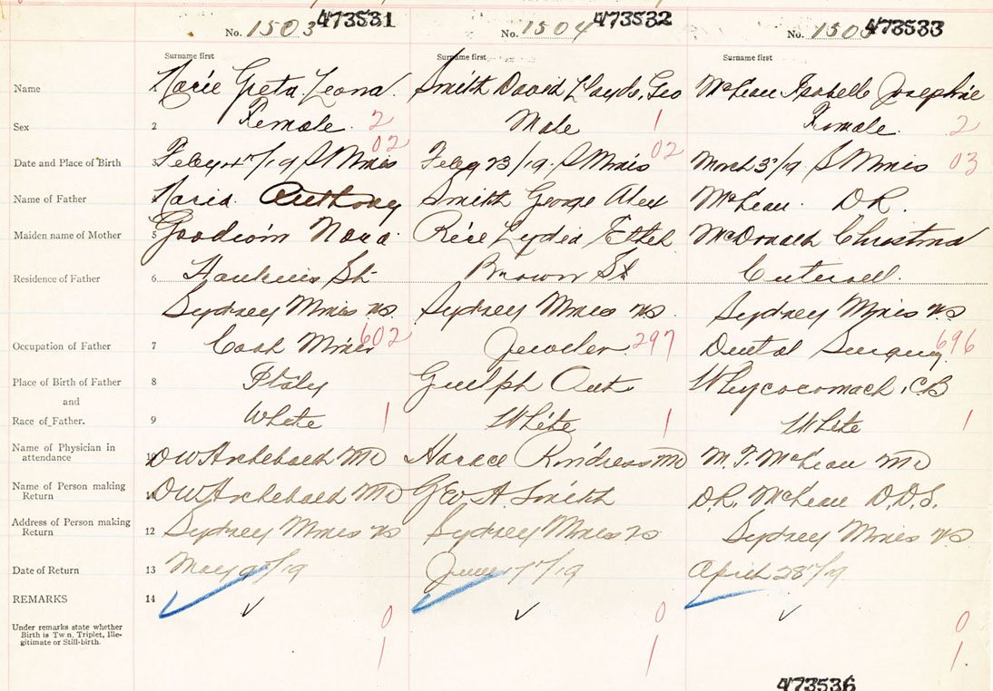 Female Birth Registration: Year: 1919 number: 47300531