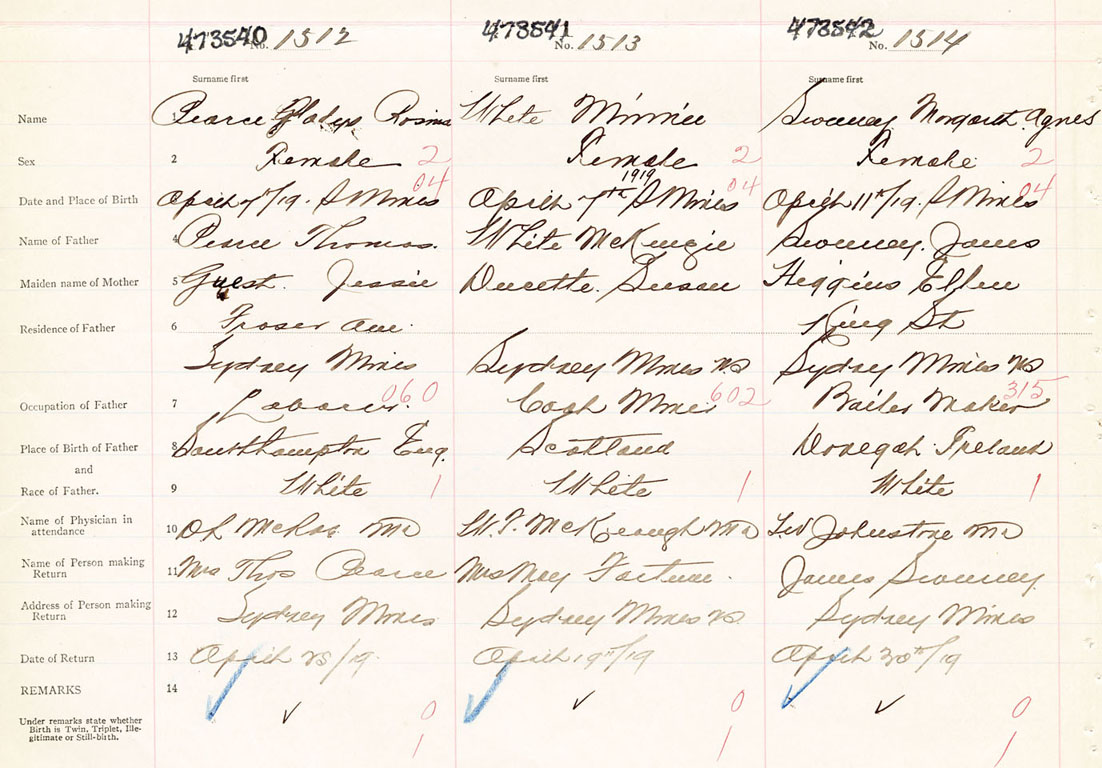 Female Birth Registration: Year: 1919 number: 47300542