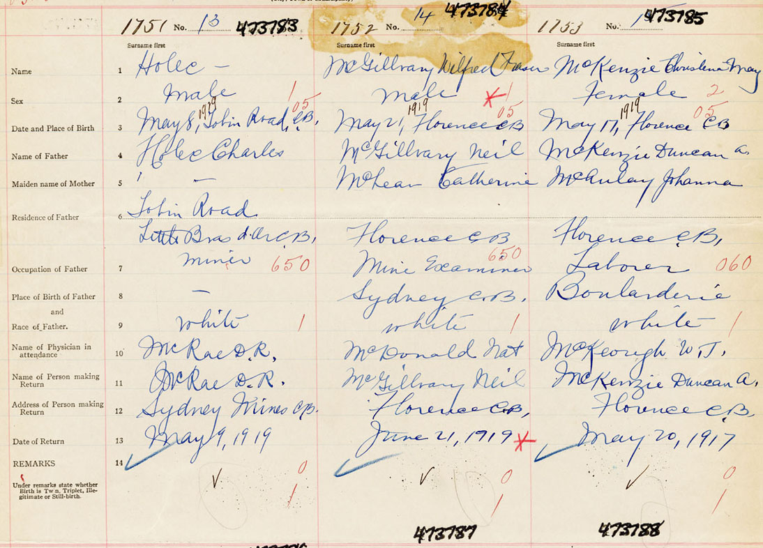 Female Birth Registration: Year: 1919 number: 47300785