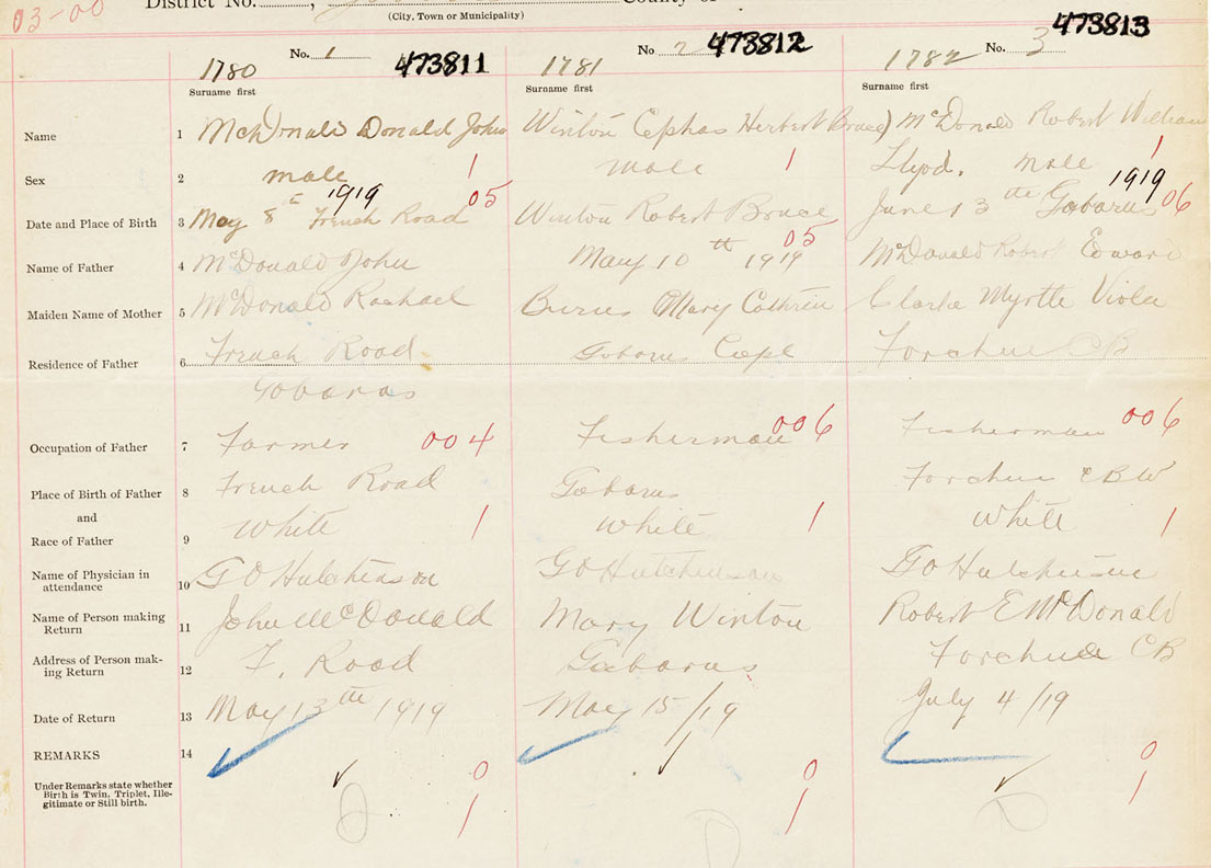 Male Birth Registration: Year: 1919 number: 47300813
