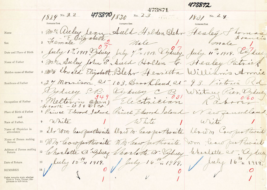 Female Birth Registration: Year: 1919 number: 47300870