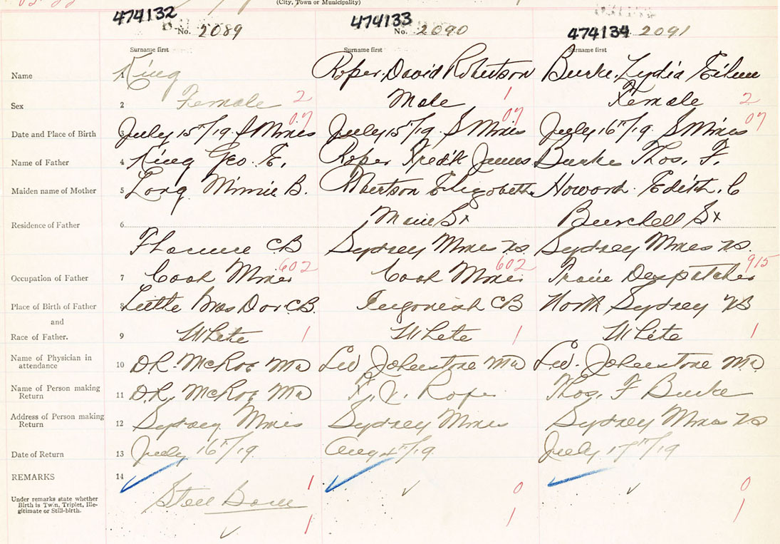 Female Birth Registration: Year: 1919 number: 47400132