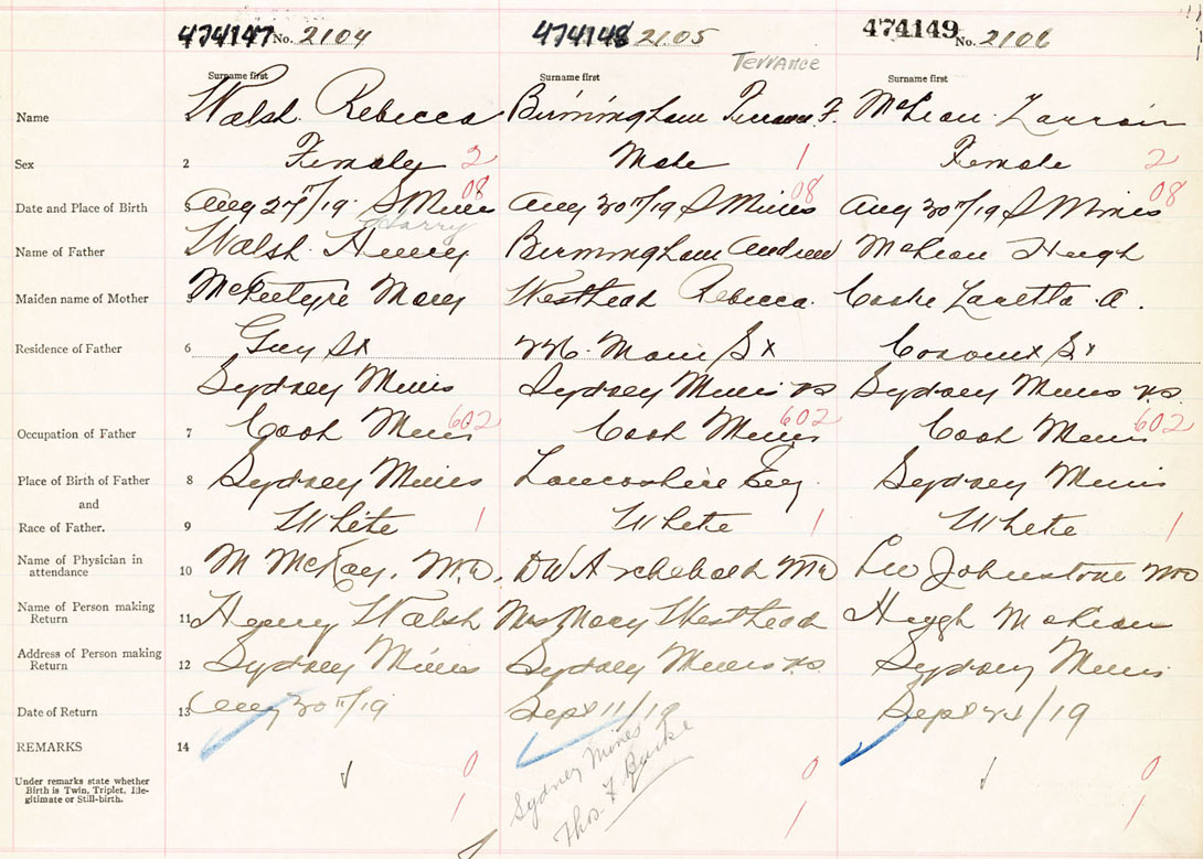 Female Birth Registration: Year: 1919 number: 47400149