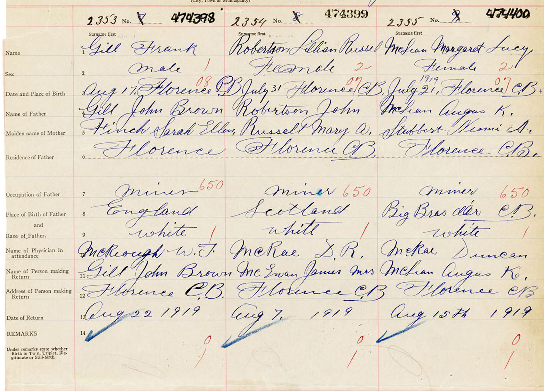 Female Birth Registration: Year: 1919 number: 47400400