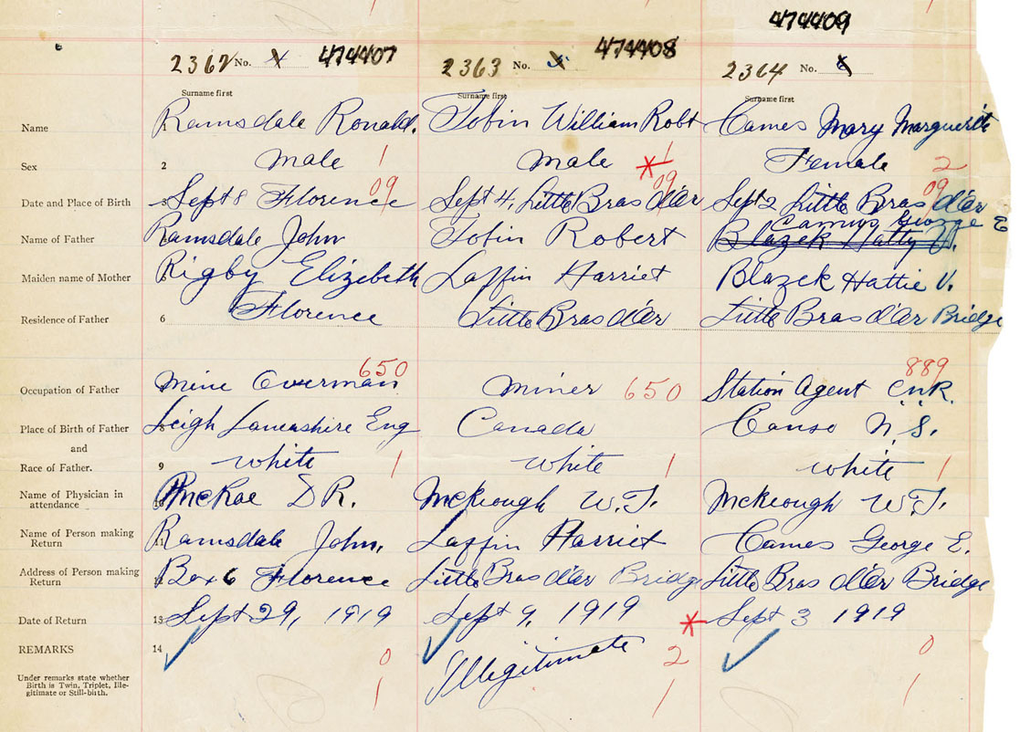 Female Birth Registration: Year: 1919 number: 47400409