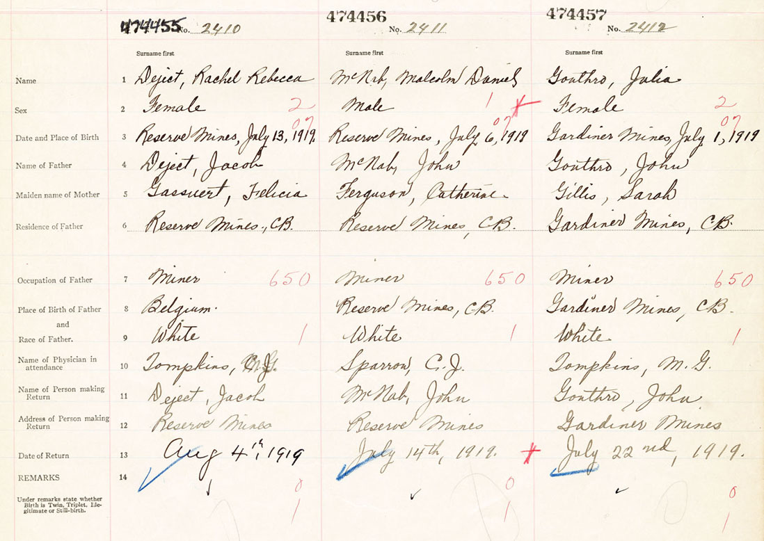 Female Birth Registration: Year: 1919 number: 47400457