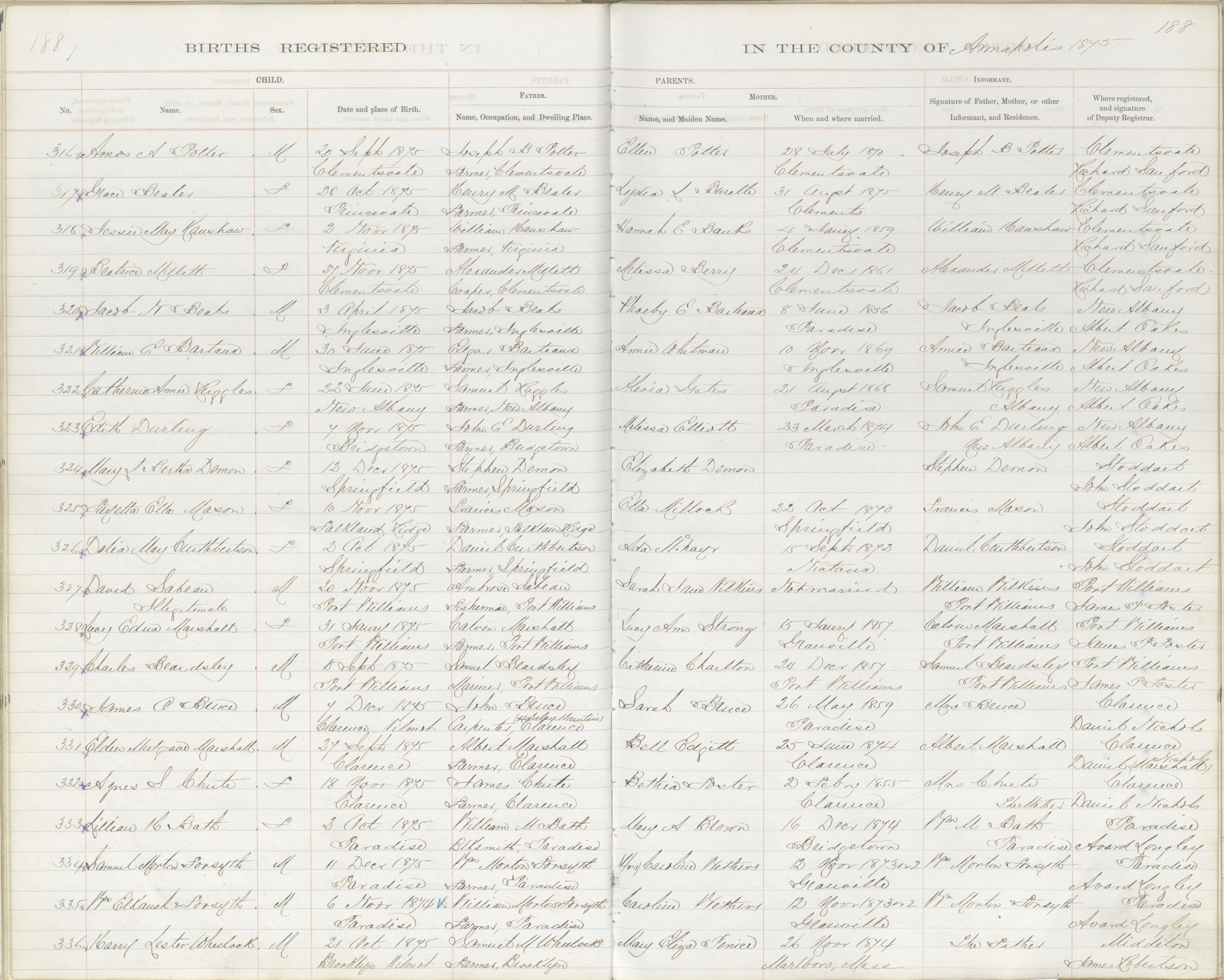 Birth Registration: Year: 1875 book: 1801 page: 188 number: 316