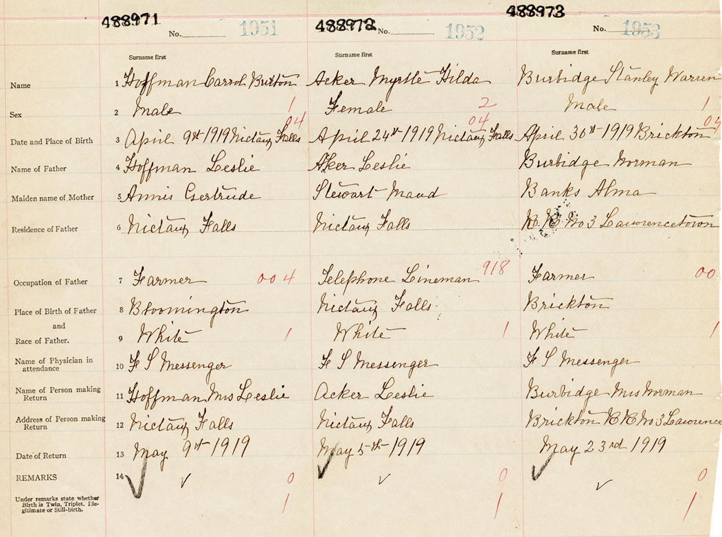 Male Birth Registration: Year: 1919 number: 48800973