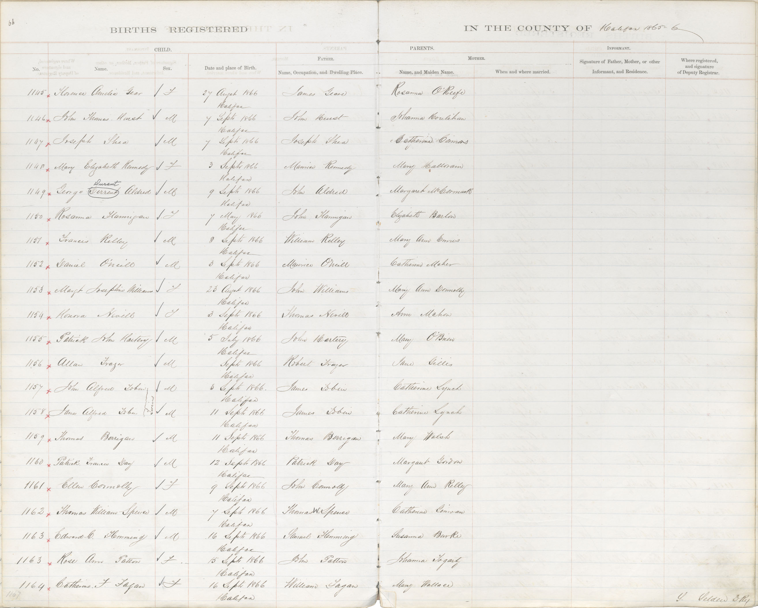 Birth Registration: Year: 1866 book: 1809 page: 66 number: 1145