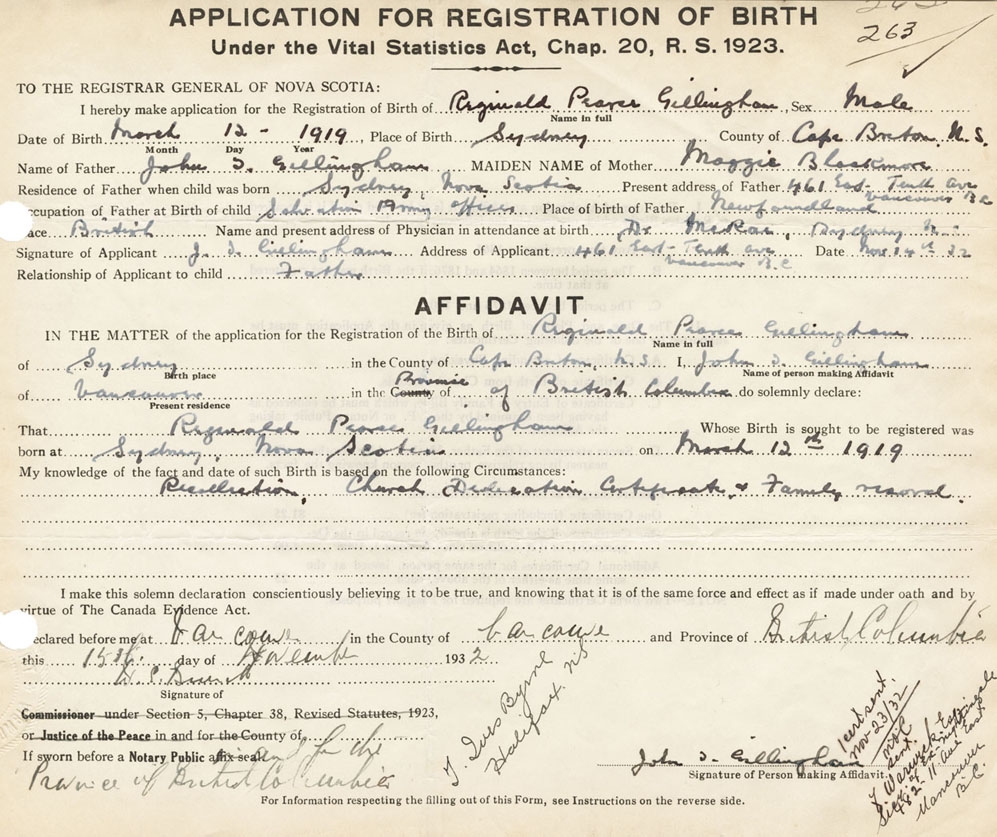 Male Birth Registration: Year: 1919 number: 93200263