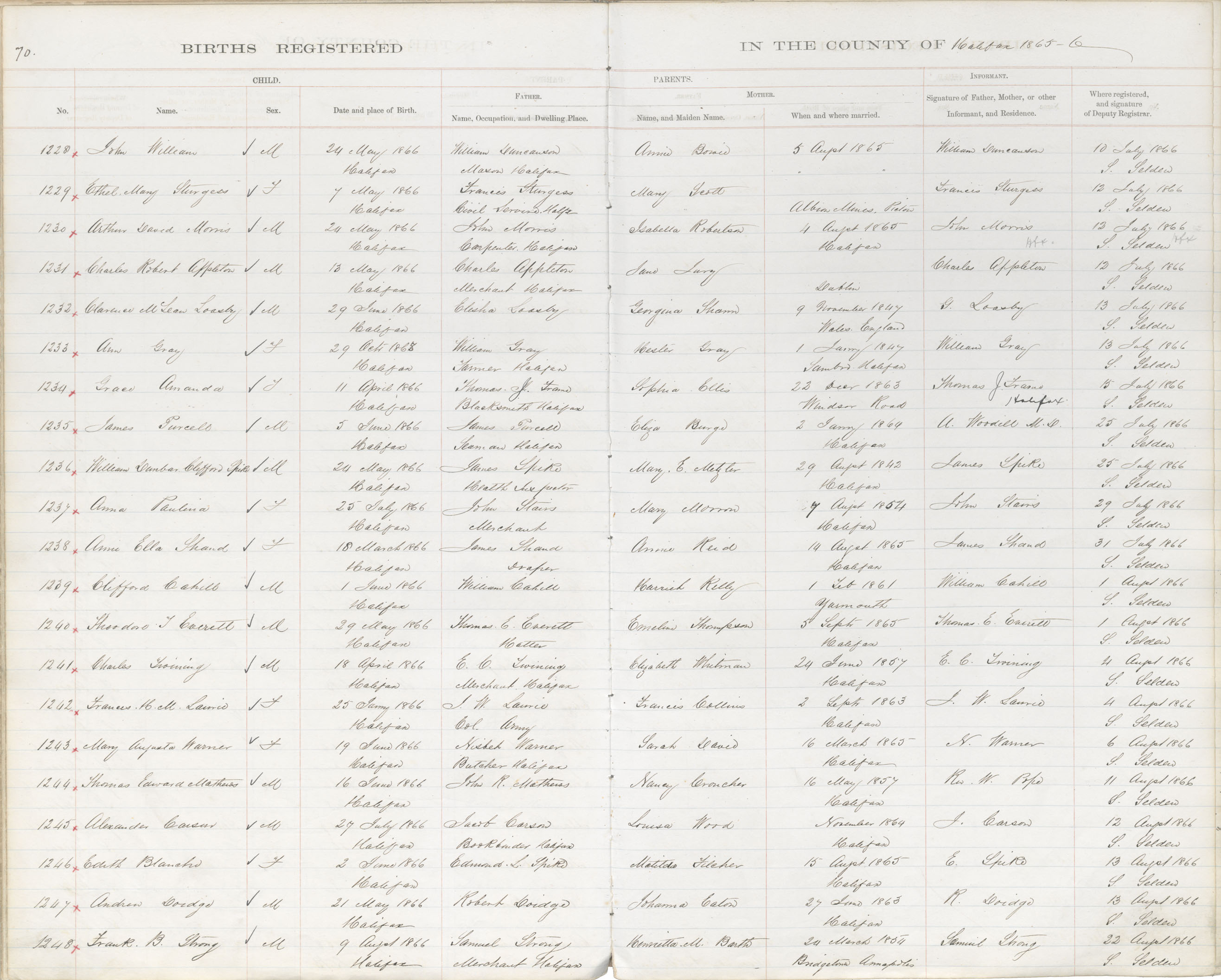 Birth Registration: Year: 1866 book: 1809 page: 70 number: 1248