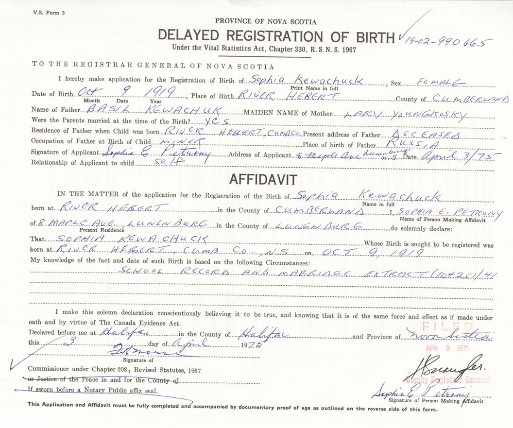 Nova Scotia Archives — https://archives.novascotia.ca/vital-statistics/birth/?ID=383009