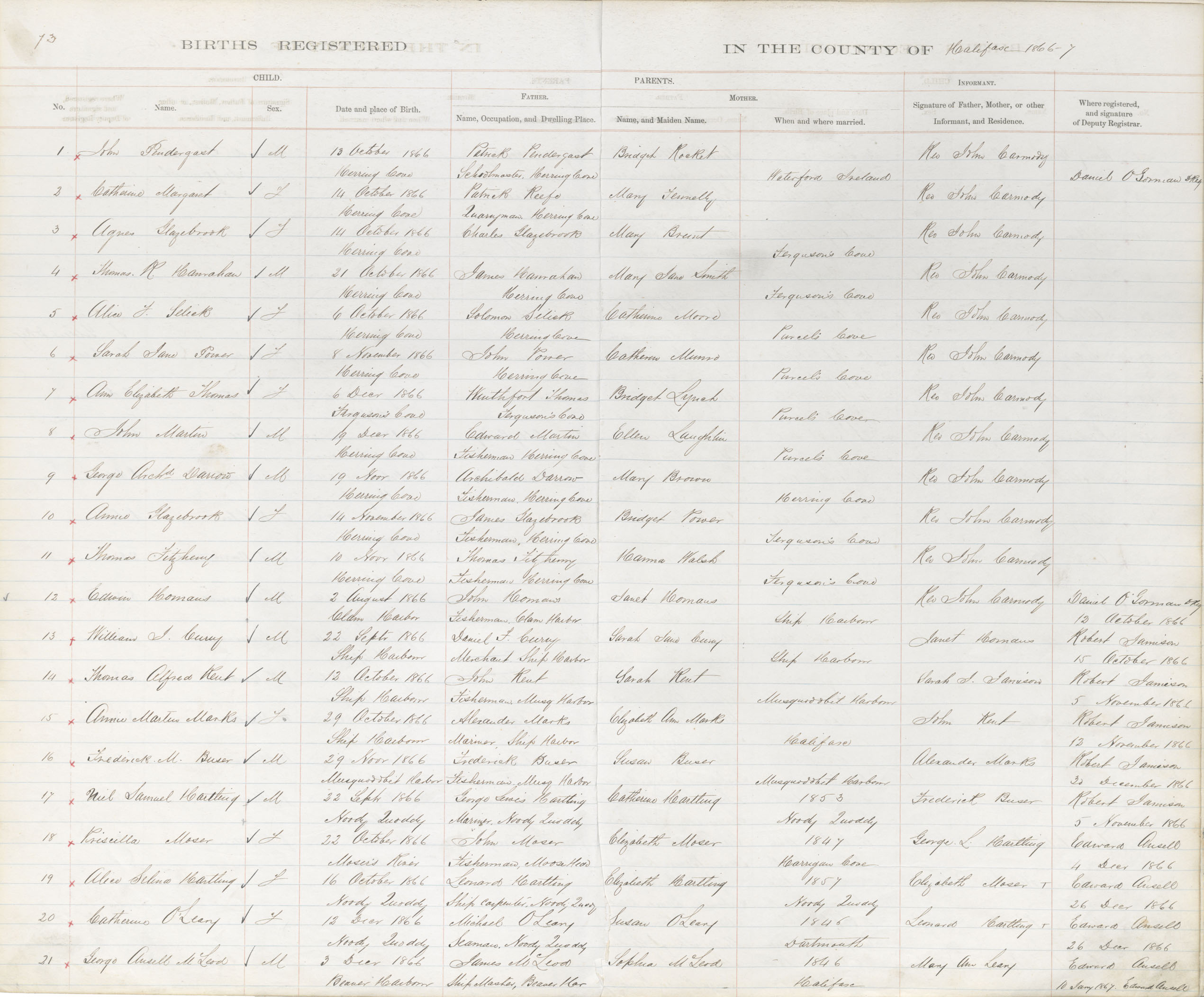 Birth Registration: Year: 1866 book: 1809 page: 73 number: 21