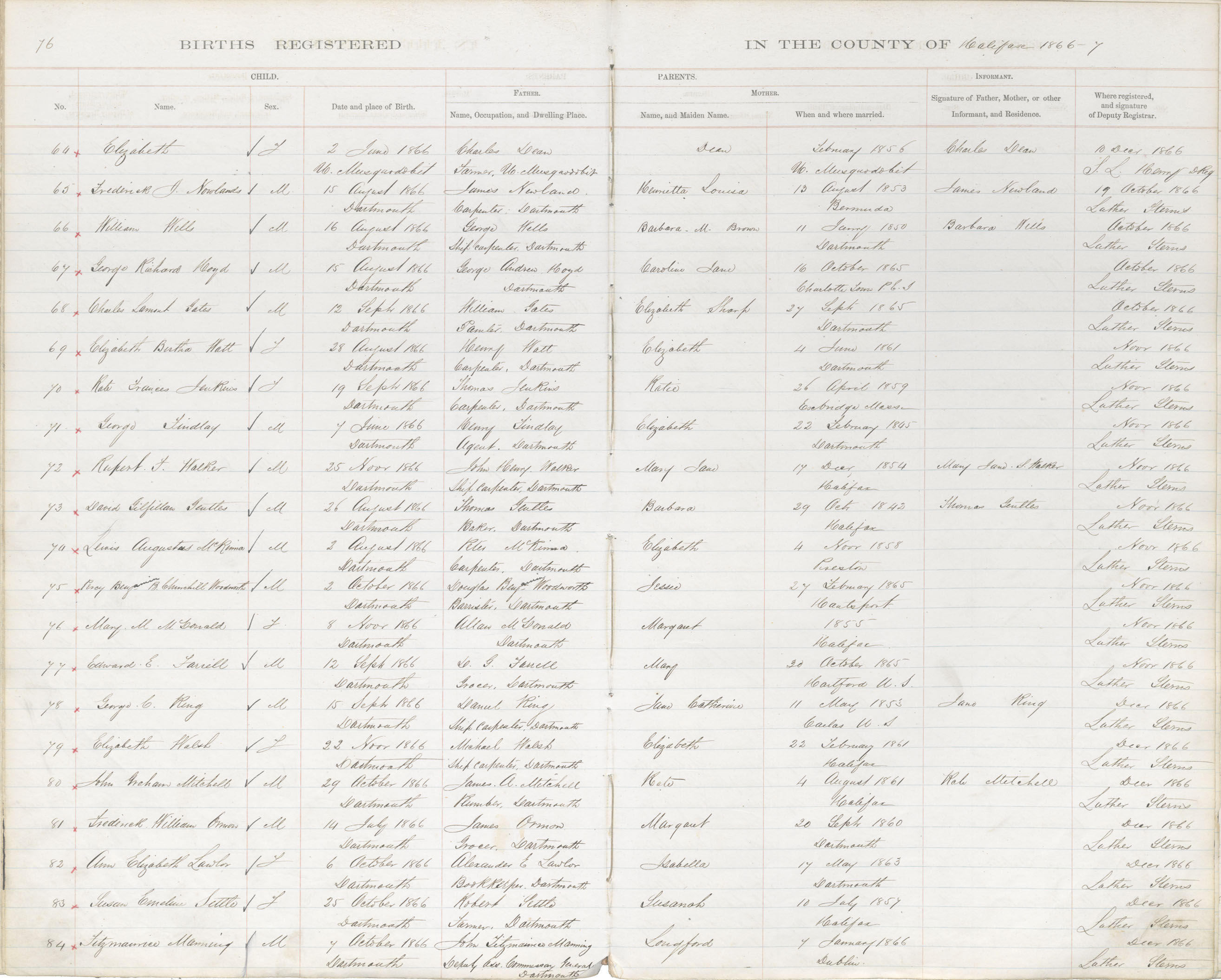 Birth Registration: Year: 1866 book: 1809 page: 76 number: 84