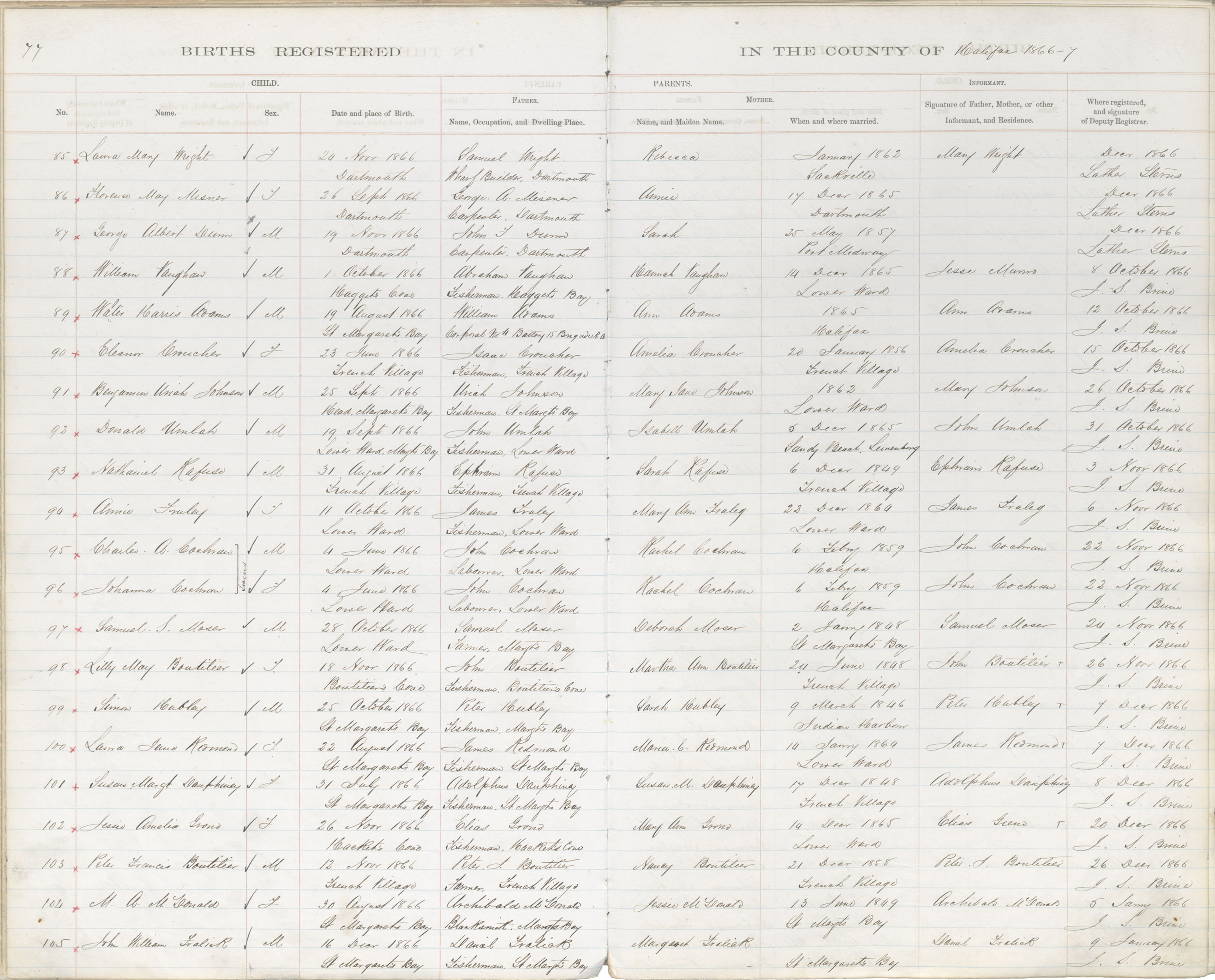 Birth Registration: Year: 1866 book: 1809 page: 77 number: 104