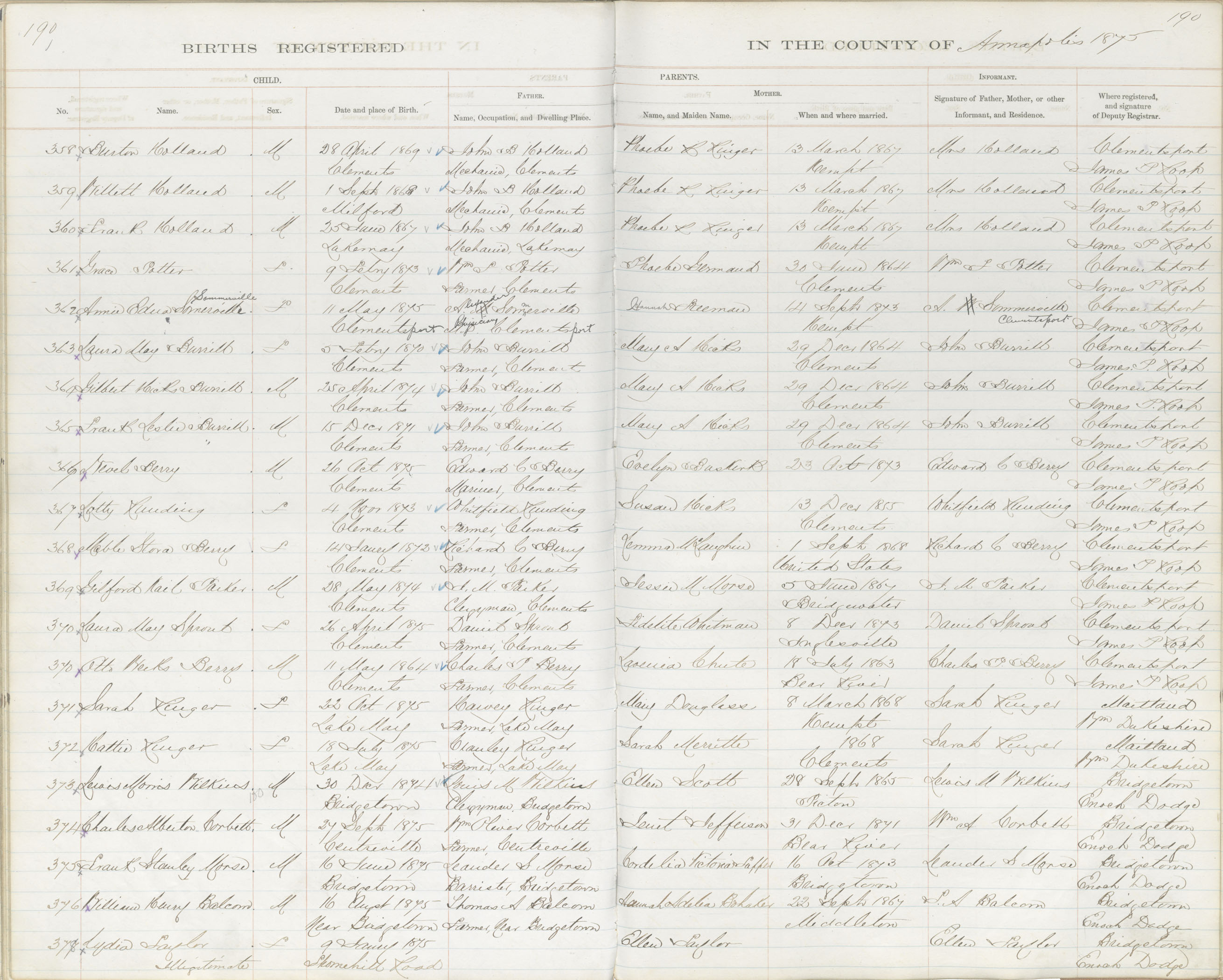 Birth Registration: Year: 1869 book: 1801 page: 190 number: 358