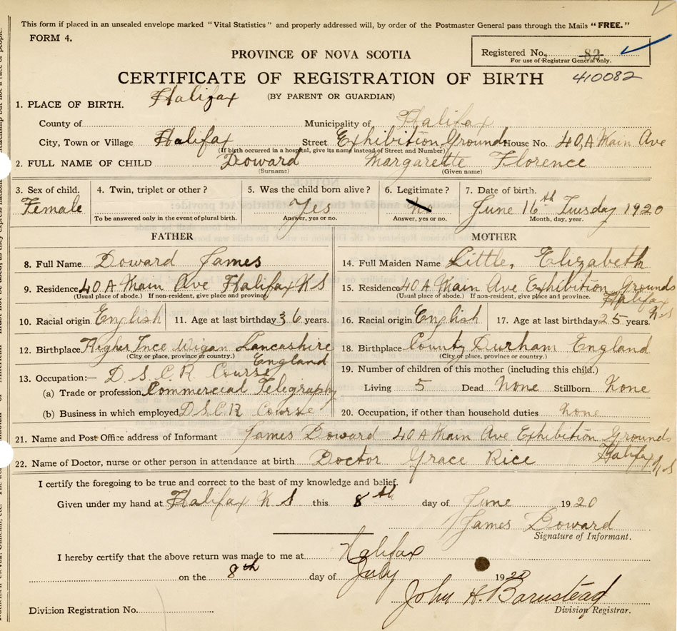 21. Name and Post Office address of Informant James Doward 40A Main Ave., Exhibition Grounds Halifax