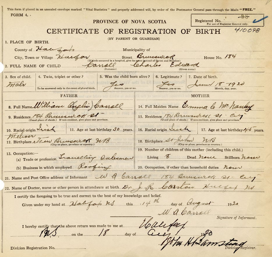 Nova Scotia Archives — https://archives.novascotia.ca/vital-statistics/birth/?ID=384558