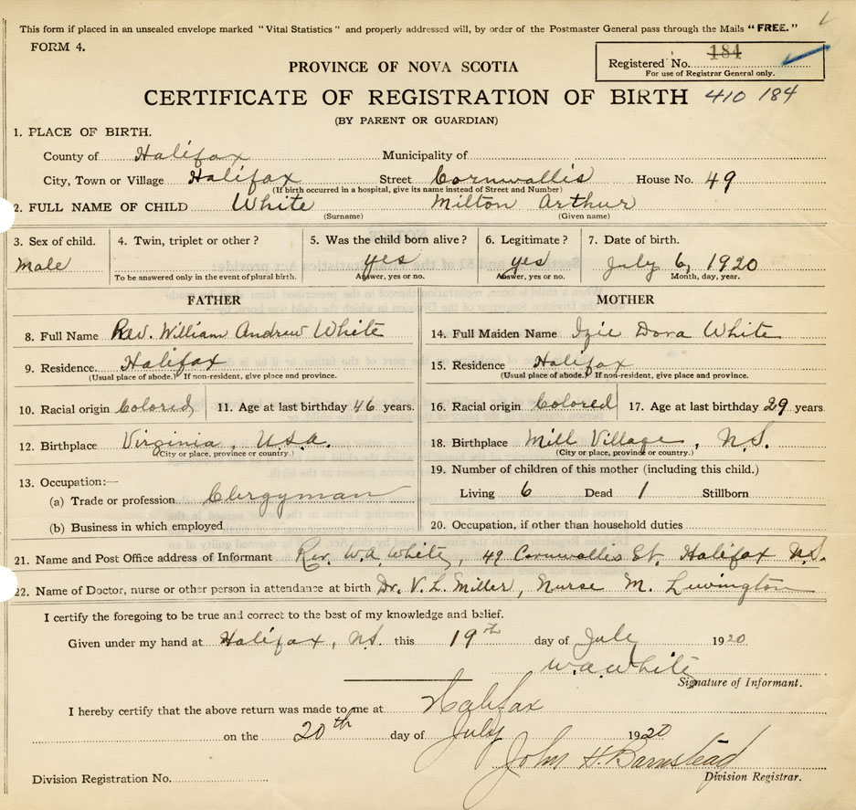 21. Name and Post Office address of Informant Rev. W. A. White 49 Cornwallis St., Halifax
