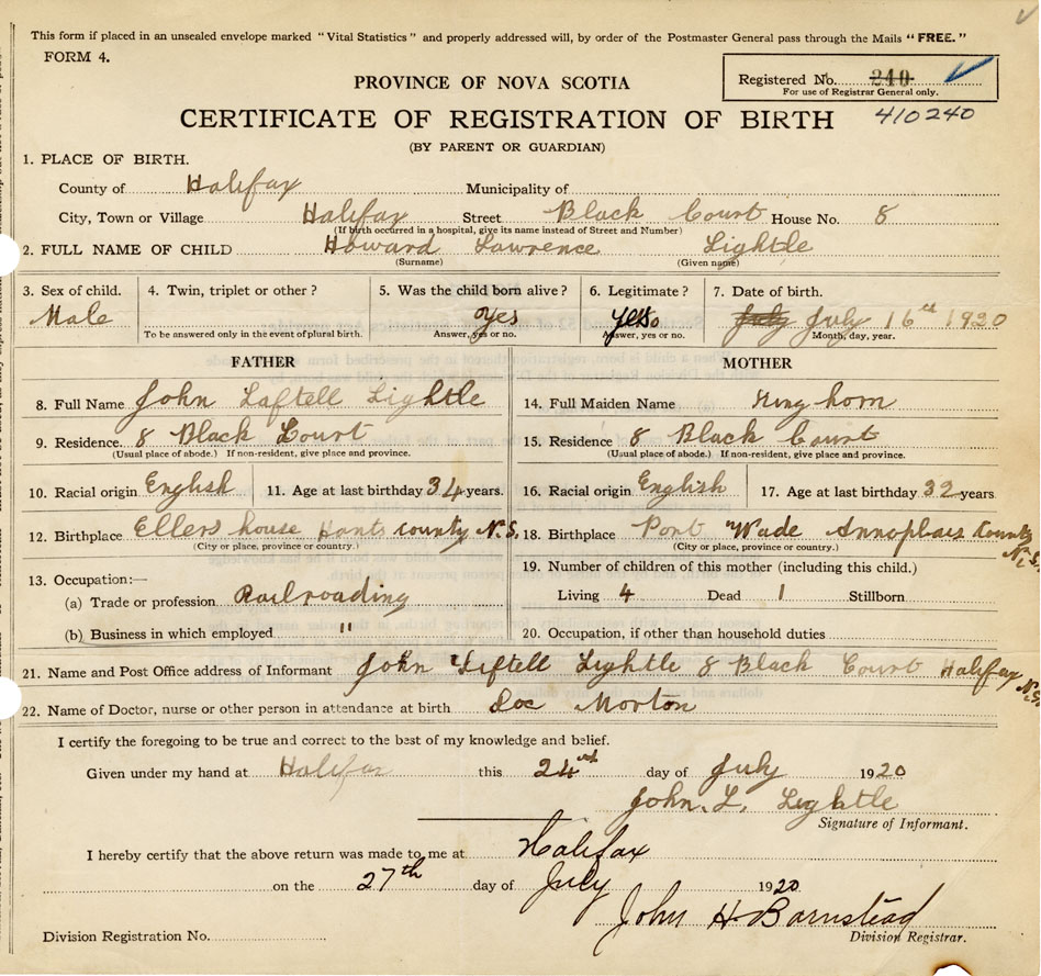 21. Name and Post Office address of Informant John Laftell Lightle 8 Black Court, Halifax
