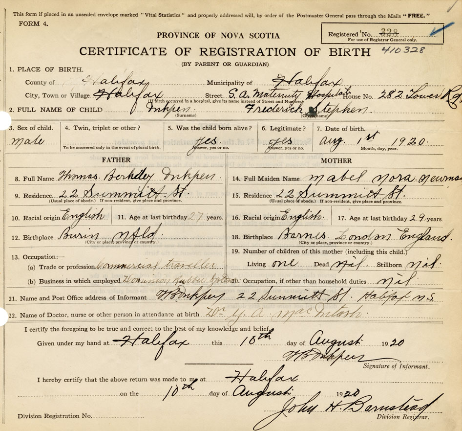 21. Name and Post Office address of Informant T.B. Inkpen 22 Summitt St., Halifax NS