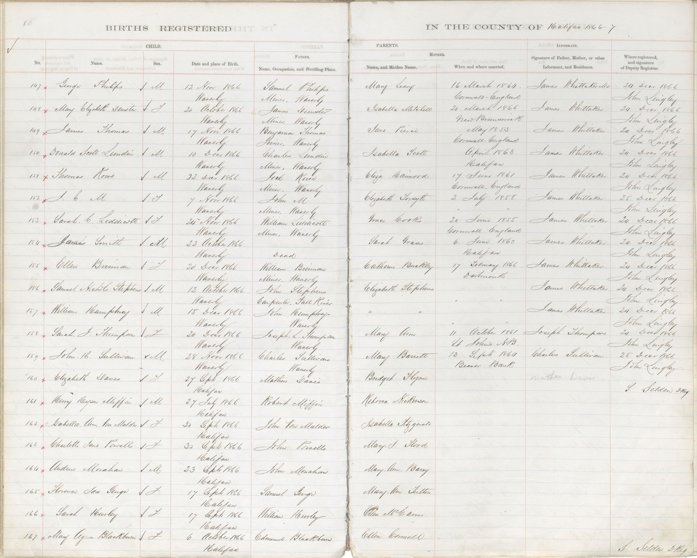 Birth Registration: Year: 1866 book: 1809 page: 80 number: 167