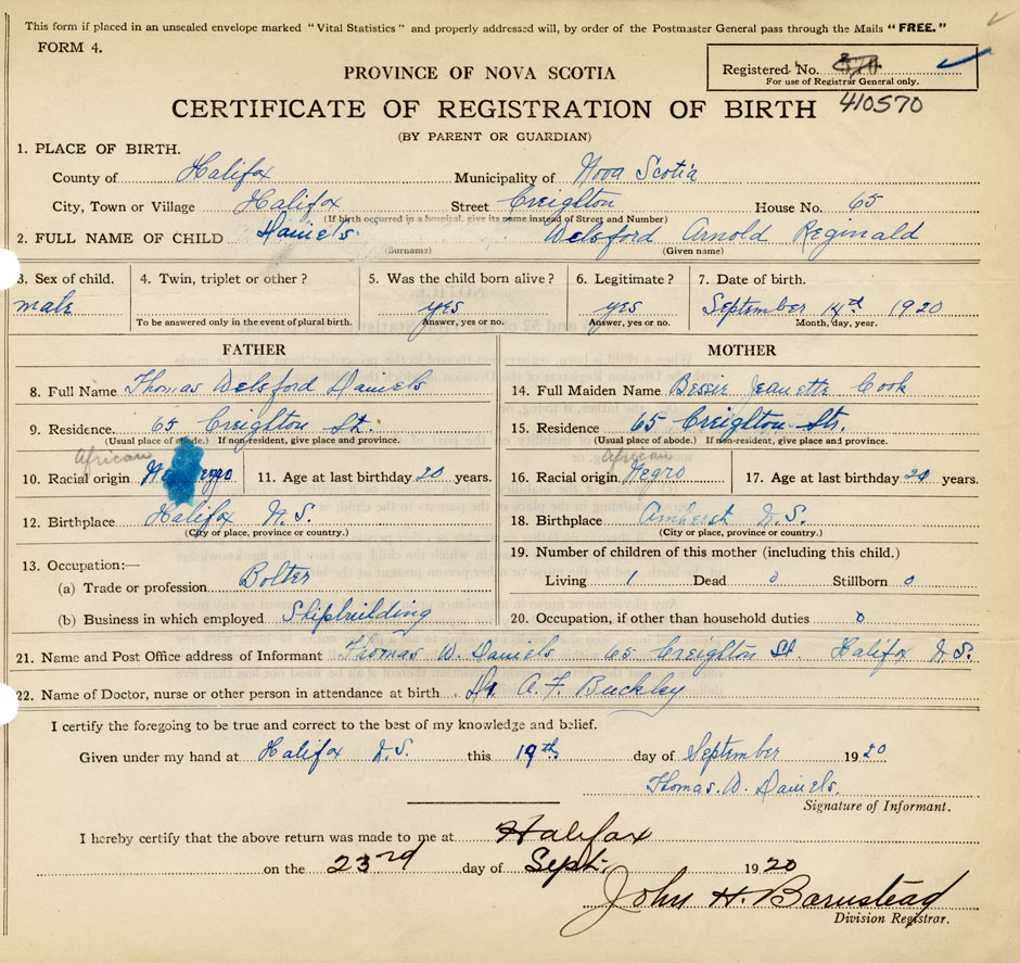 21. Name and Post Office address of Informant Thomas W. Daniels 65 Creighton St., Halifax