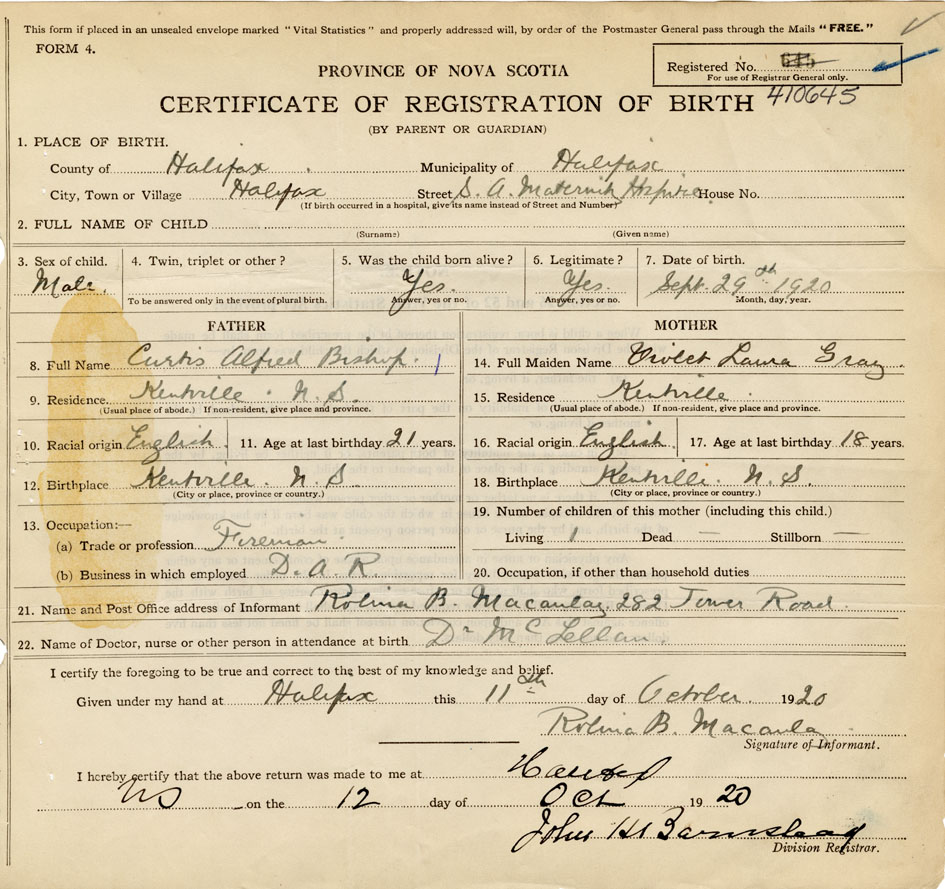Nova Scotia Archives — https://archives.novascotia.ca/vital-statistics/birth/?ID=385104