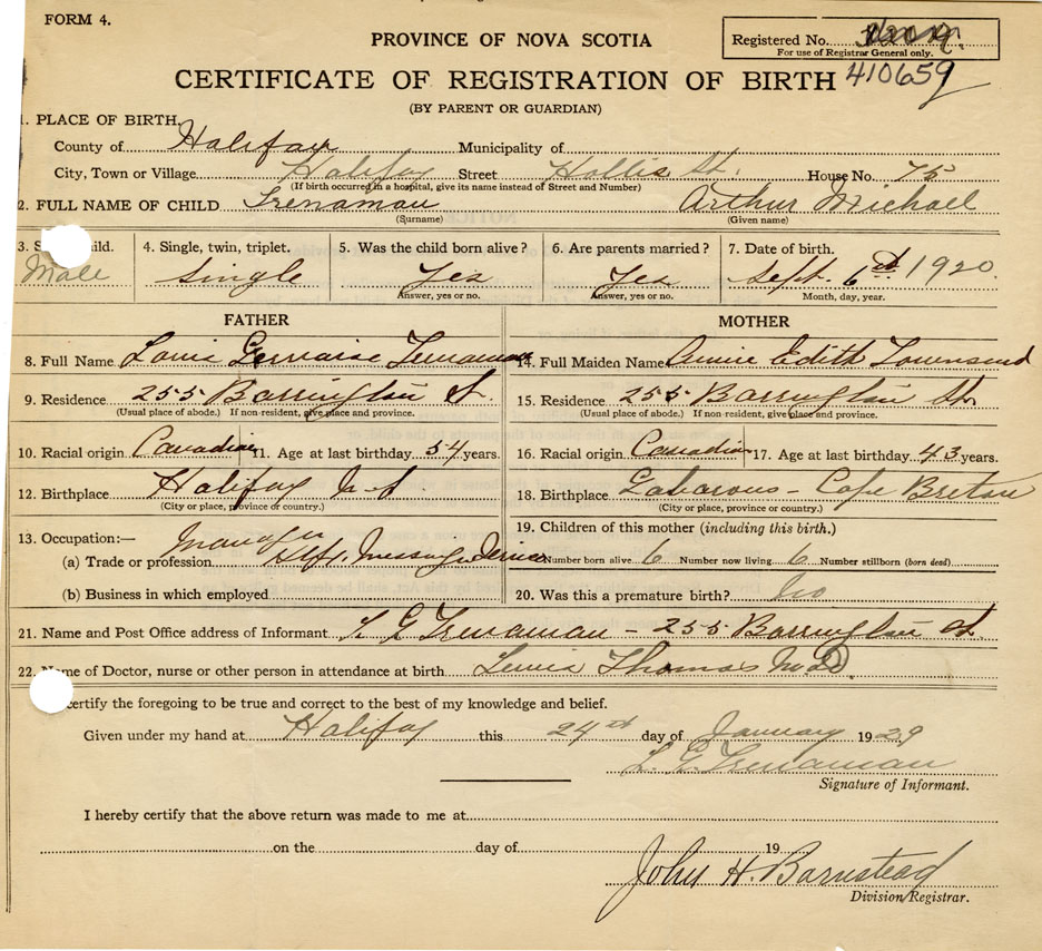 21. Name and Post Office address of Informant L. G. Trenaman 255 Barrington St.