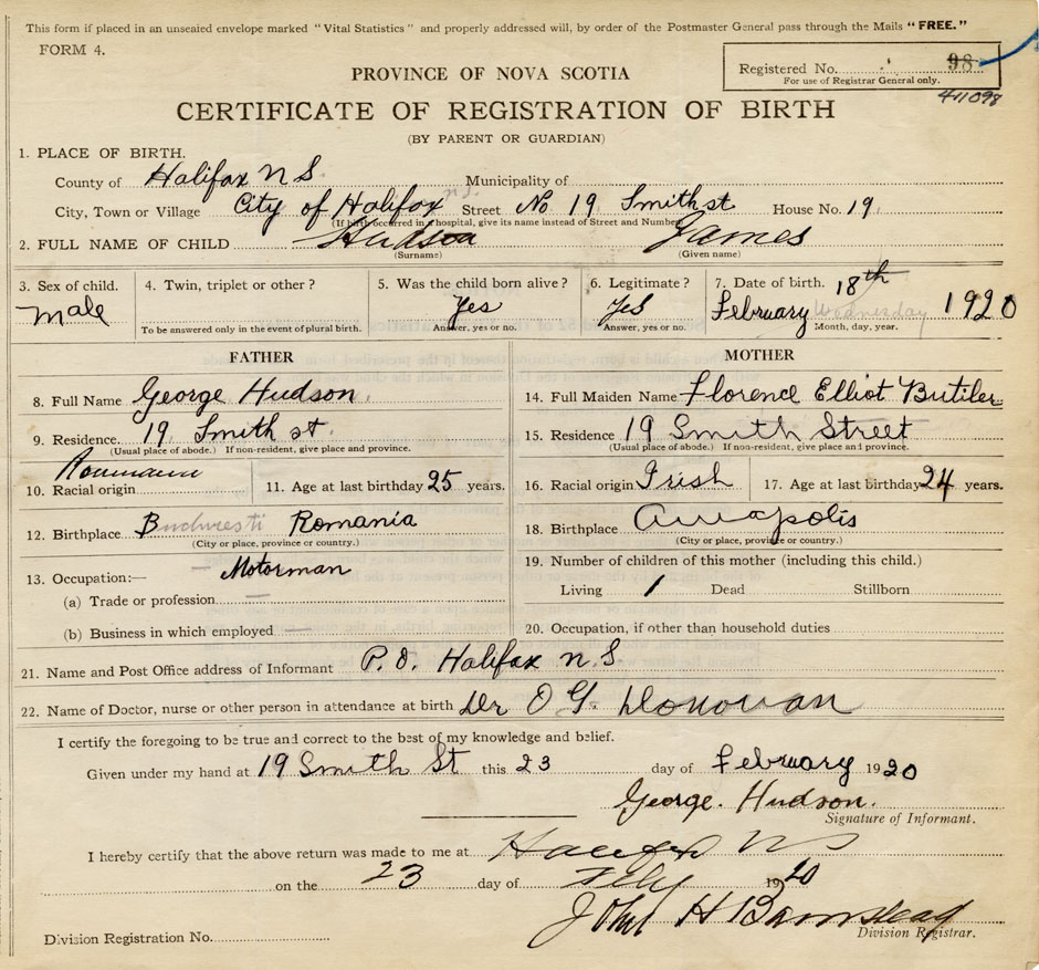21. Name and Post Office address of Informant George Hudson P. O. Halifax