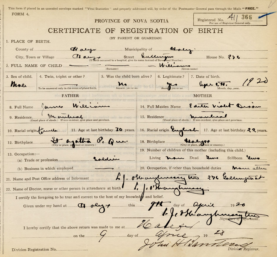 Nova Scotia Archives — https://archives.novascotia.ca/vital-statistics/birth/?ID=385483
