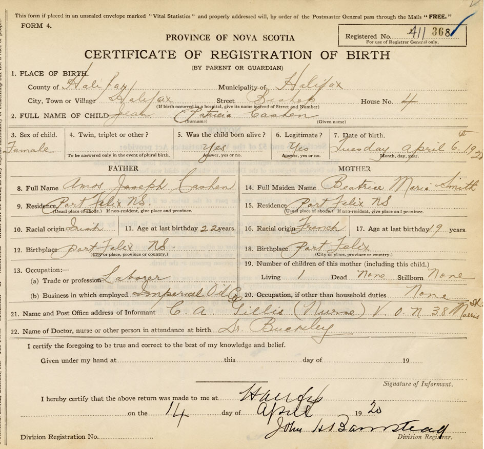 Nova Scotia Archives — https://archives.novascotia.ca/vital-statistics/birth/?ID=385485