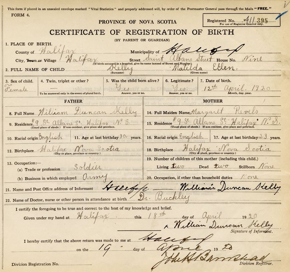 21. Name and Post Office address of Informant William Duncan Kelly Halifax