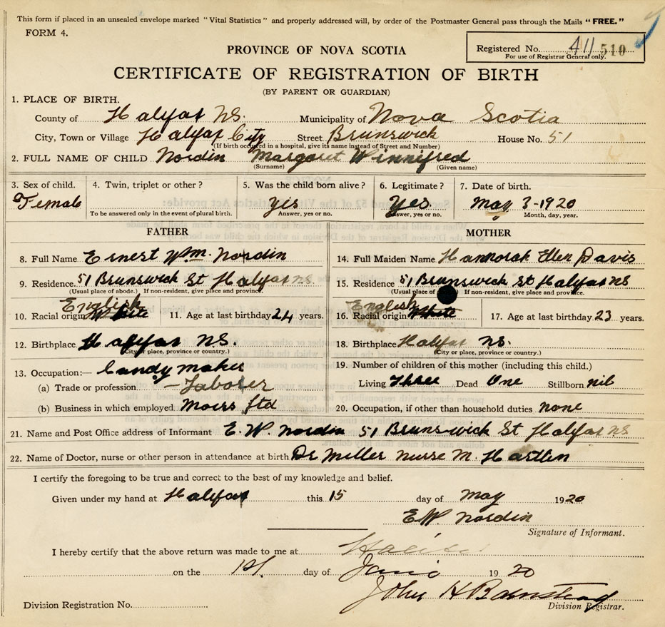 21. Name and Post Office address of Informant E. W. Nordin 51 Brunswick St., Halifax