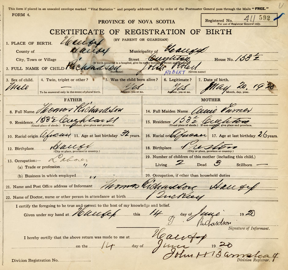 21. Name and Post Office address of Informant Thomas Richardson Halifax