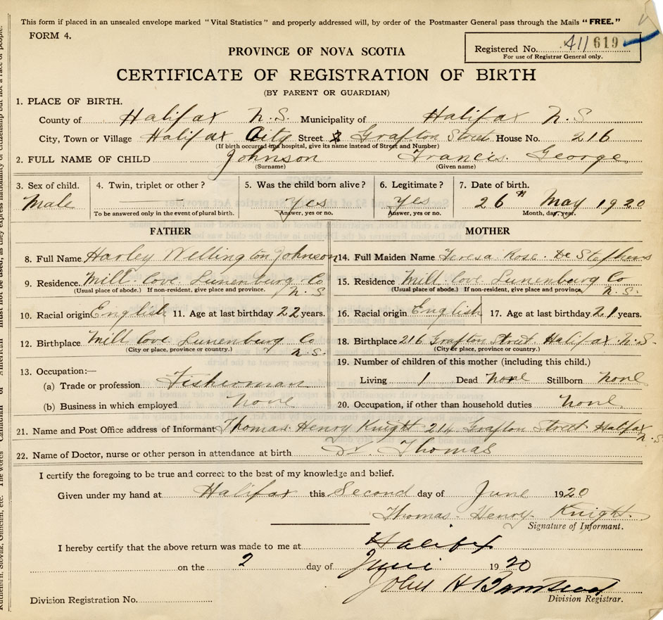 Nova Scotia Archives — https://archives.novascotia.ca/vital-statistics/birth/?ID=385731