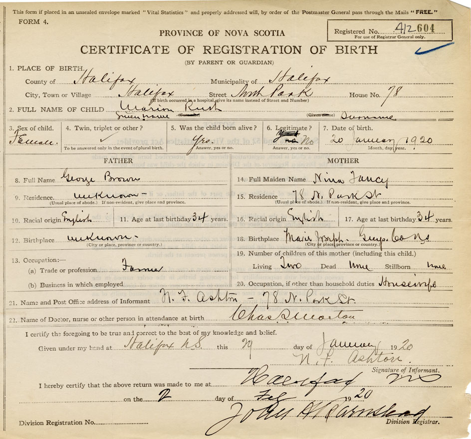 Nova Scotia Archives — https://archives.novascotia.ca/vital-statistics/birth/?ID=385850