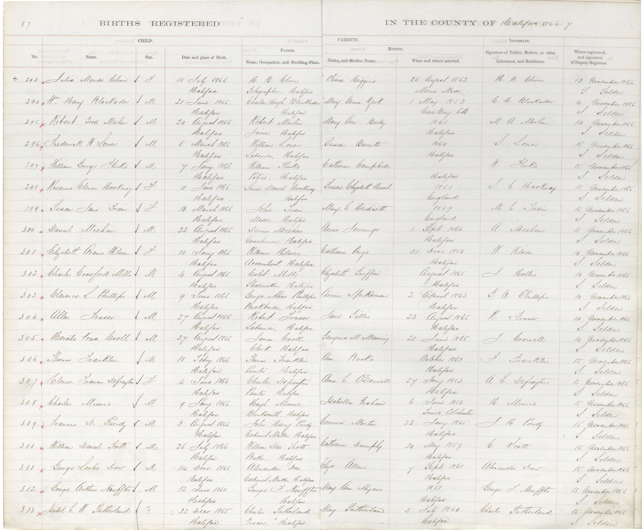 Birth Registration: Year: 1865 book: 1809 page: 87 number: 313