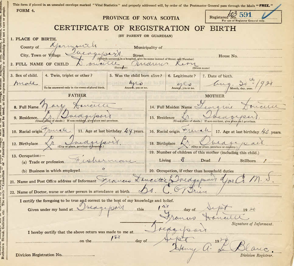 21. Name and Post Office address of Informant Frances Doucette Lr. Wedgeport, Yar. Co.