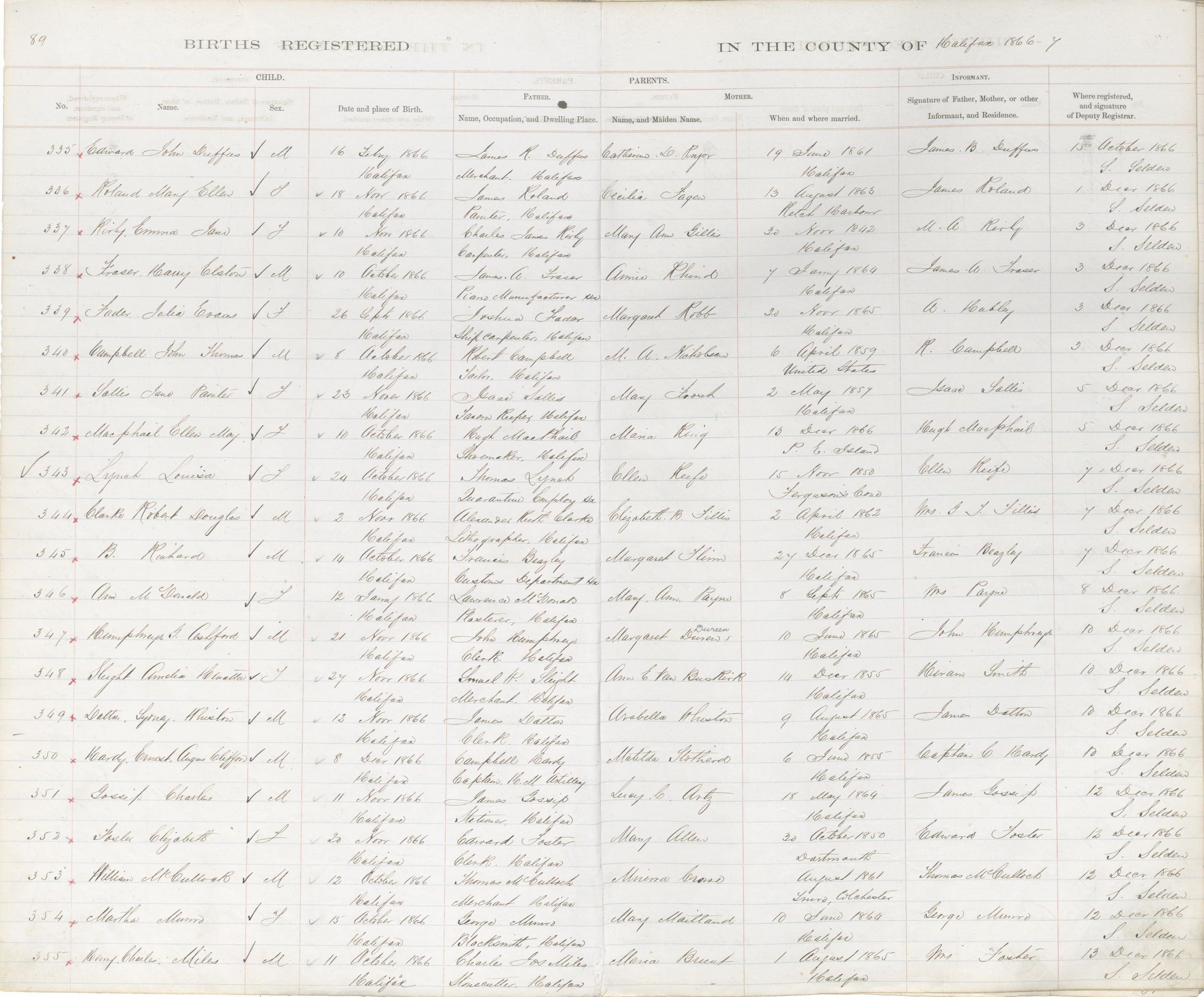 Birth Registration: Year: 1866 book: 1809 page: 89 number: 355