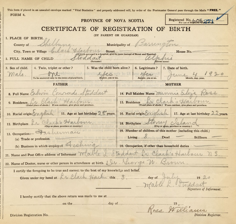 21. Name and Post Office address of Informant Mable L. Stoddart Lr. Clarks Harbour