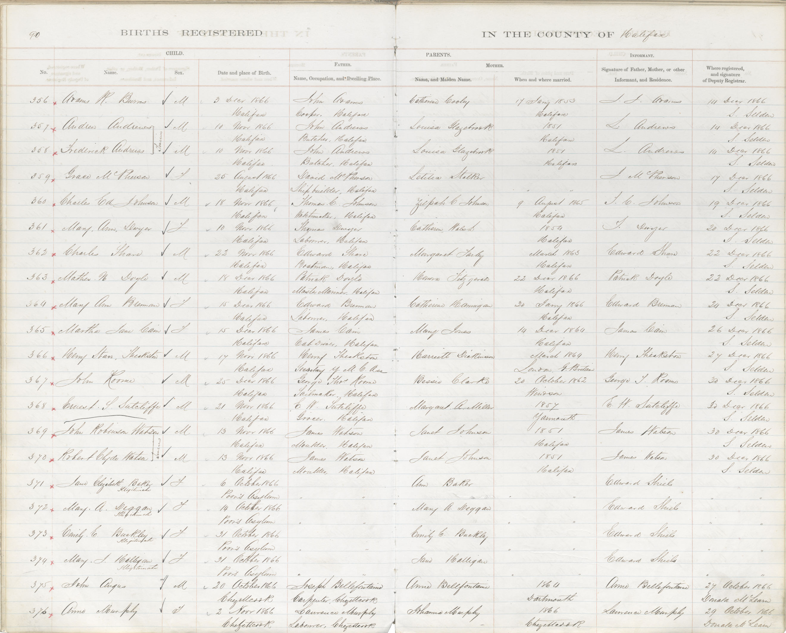 Birth Registration: Year: 1866 book: 1809 page: 90 number: 376
