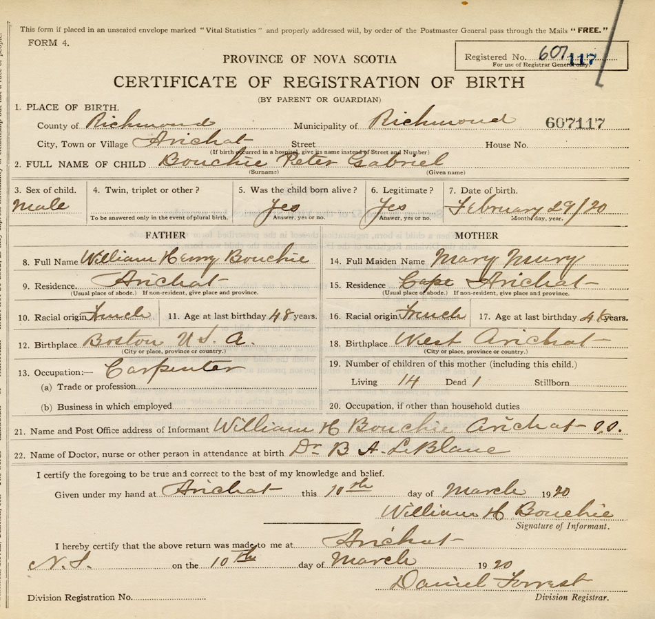 21. Name and Post Office address of Informant William H. Bouchie Arichat