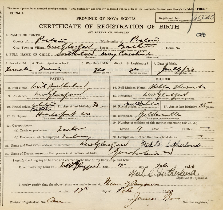 Nova Scotia Archives — https://archives.novascotia.ca/vital-statistics/birth/?ID=387238