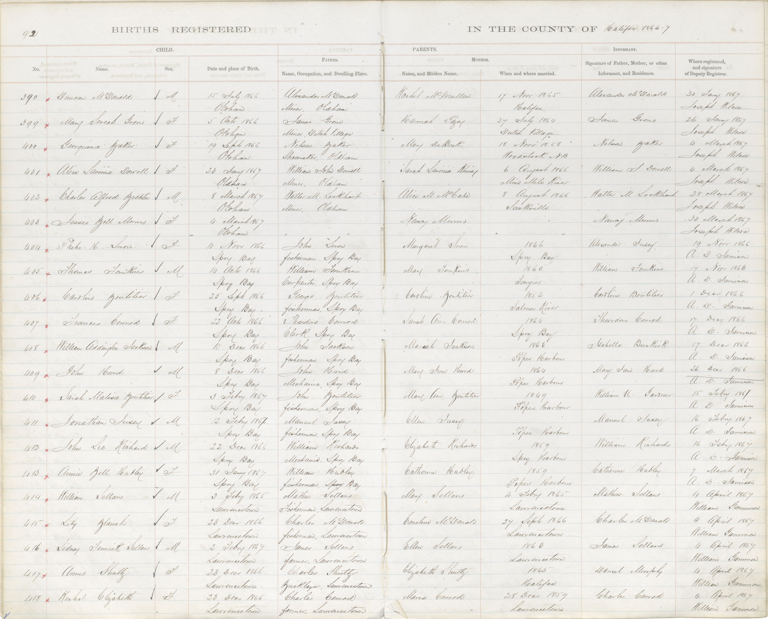 Birth Registration: Year: 1866 book: 1809 page: 92 number: 418