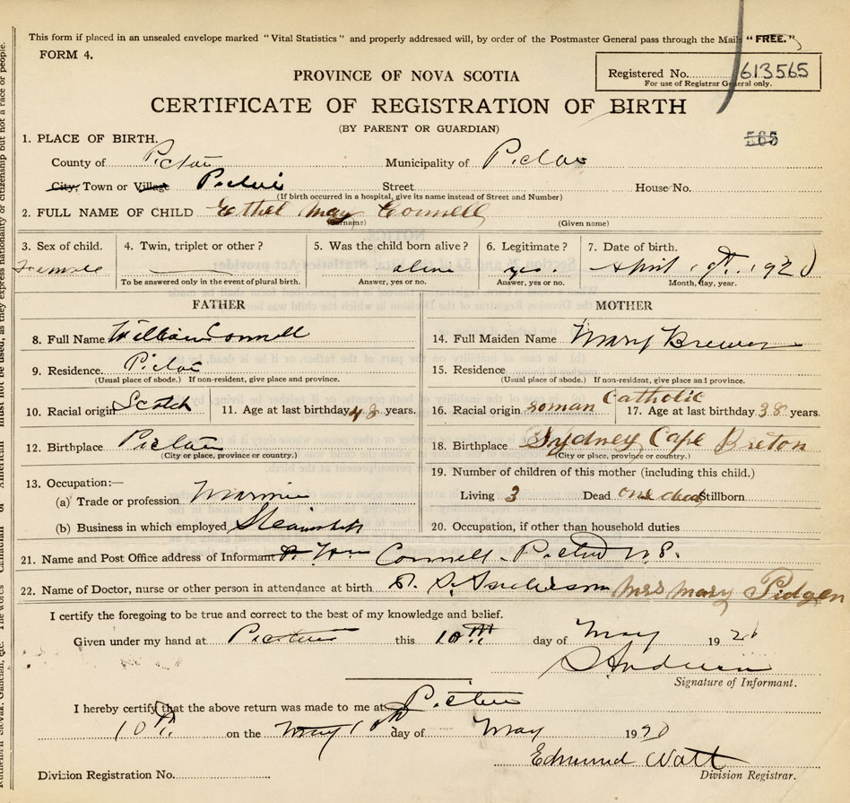 Nova Scotia Archives — https://archives.novascotia.ca/vital-statistics/birth/?ID=387538