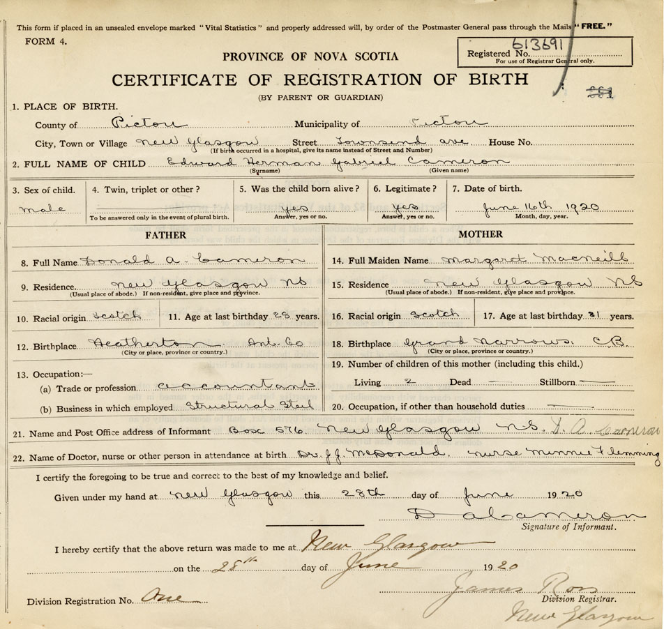 Nova Scotia Archives — https://archives.novascotia.ca/vital-statistics/birth/?ID=387663