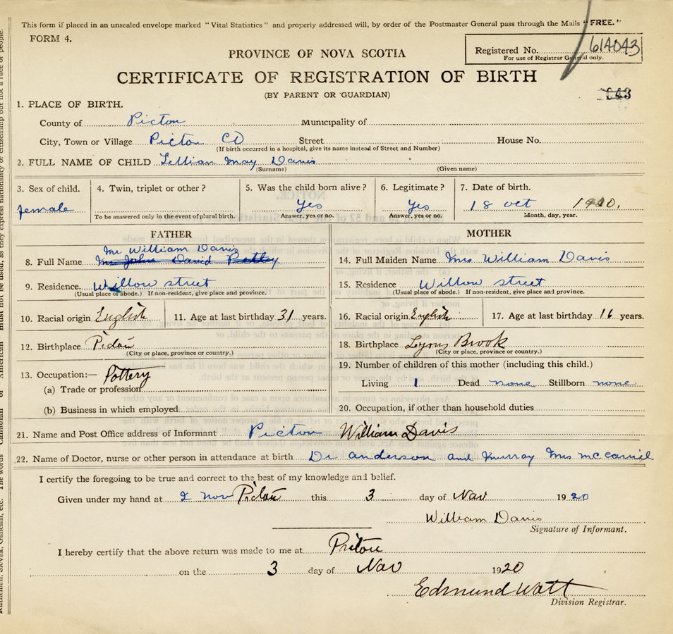 Nova Scotia Archives — https://archives.novascotia.ca/vital-statistics/birth/?ID=388010
