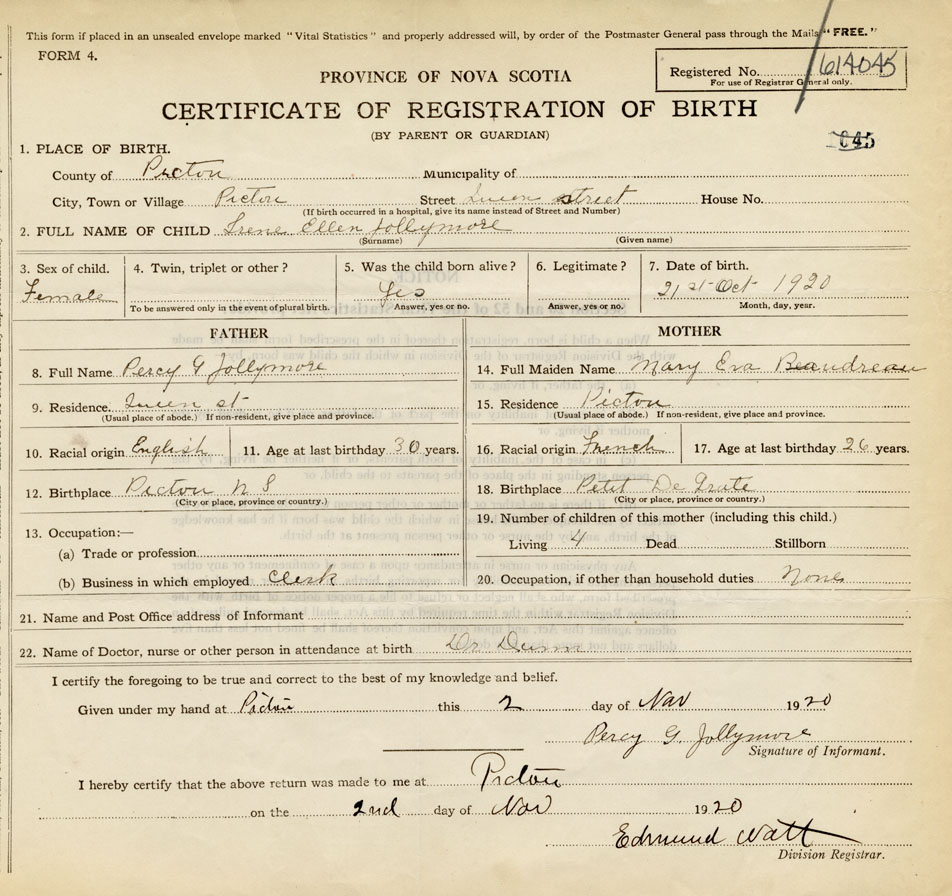 Nova Scotia Archives — https://archives.novascotia.ca/vital-statistics/birth/?ID=388012