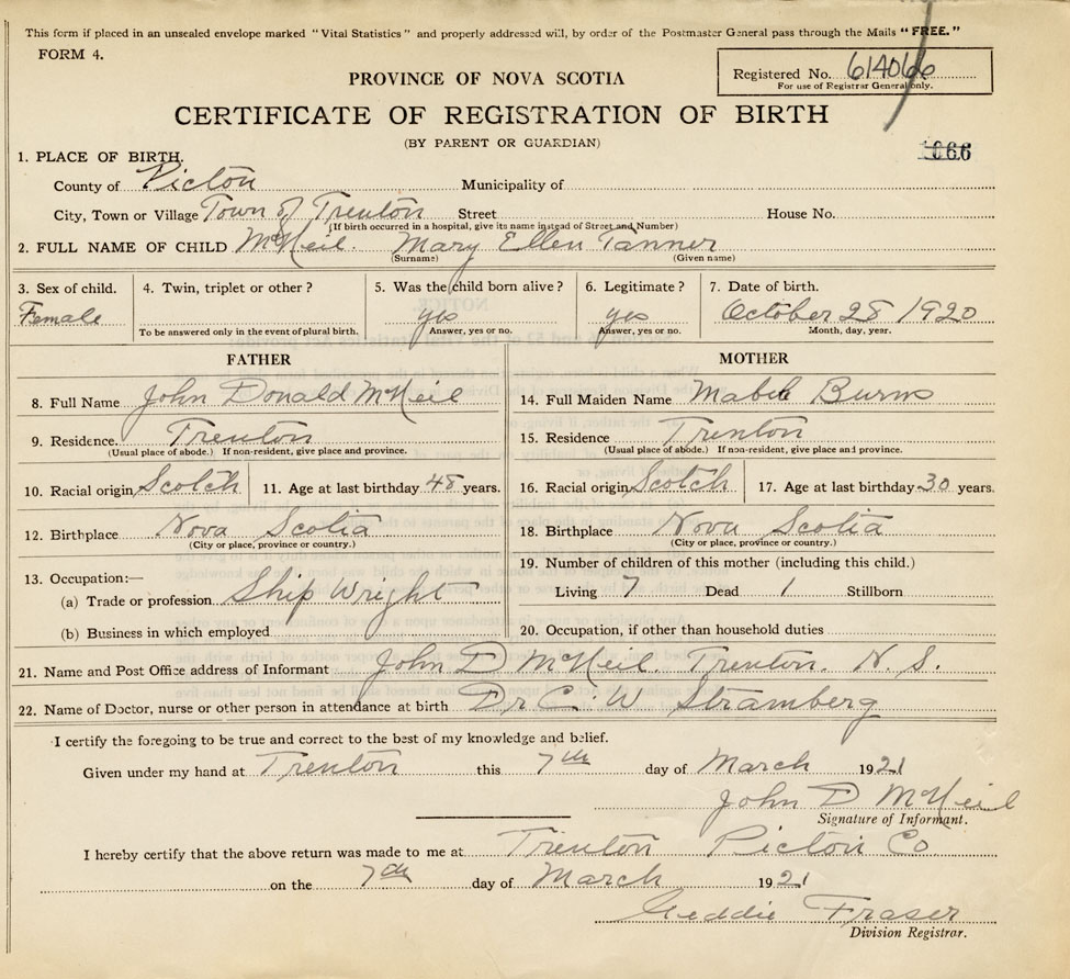 Nova Scotia Archives — https://archives.novascotia.ca/vital-statistics/birth/?ID=388033